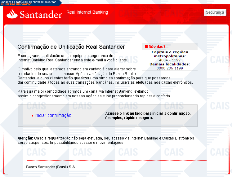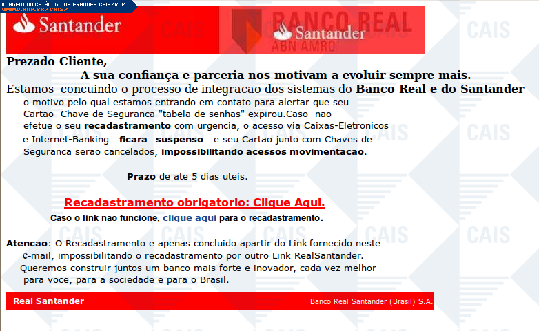| assunto | Banco RealSantander (Brasil) - Prezado cliente Atualize-se! | |