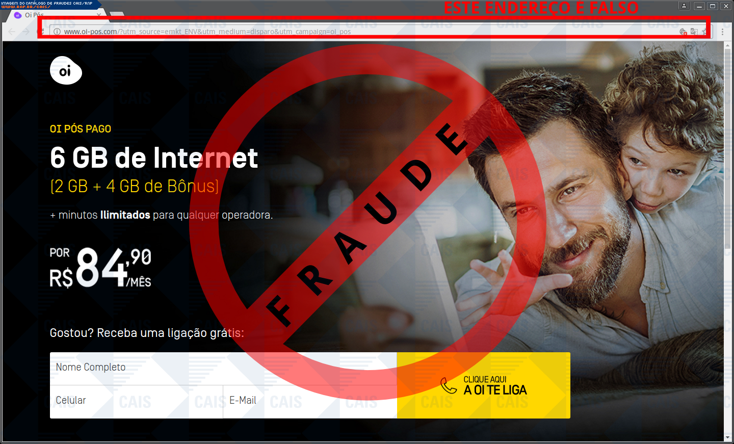 | comentário | O usuário recebe um email sugerindo promoção em nome da OI de telefone pós-pago, a mensagem é falsa e disponibiliza link para roubar informações do usuário. | |