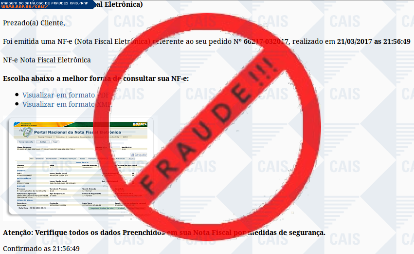 | tipo | FRAUDE - Nota Fiscal Eletrônica e Boletos | ID: 51726 |