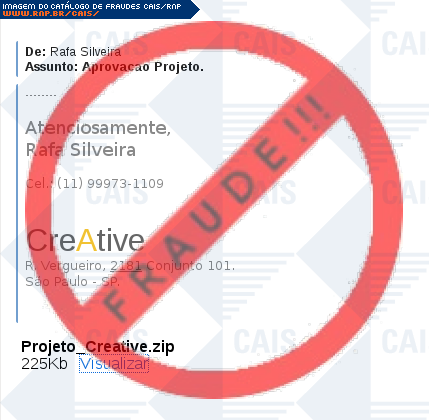 | comentário | O usuário recebe uma mensagem contendo uma proposta de projeto da empresa Criative disponível para download, no entanto o arquivo originado é malicioso criado para roubar informações da vítima e instalar outros arquivos fraudulentos com o nome de Gen:Variant.Symmi.44066.... (leia mais) | |