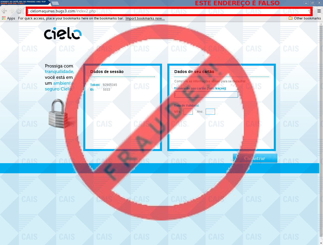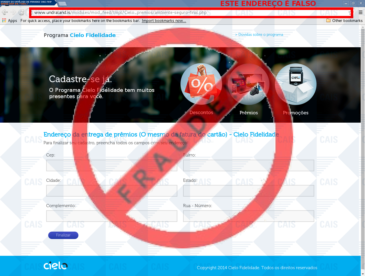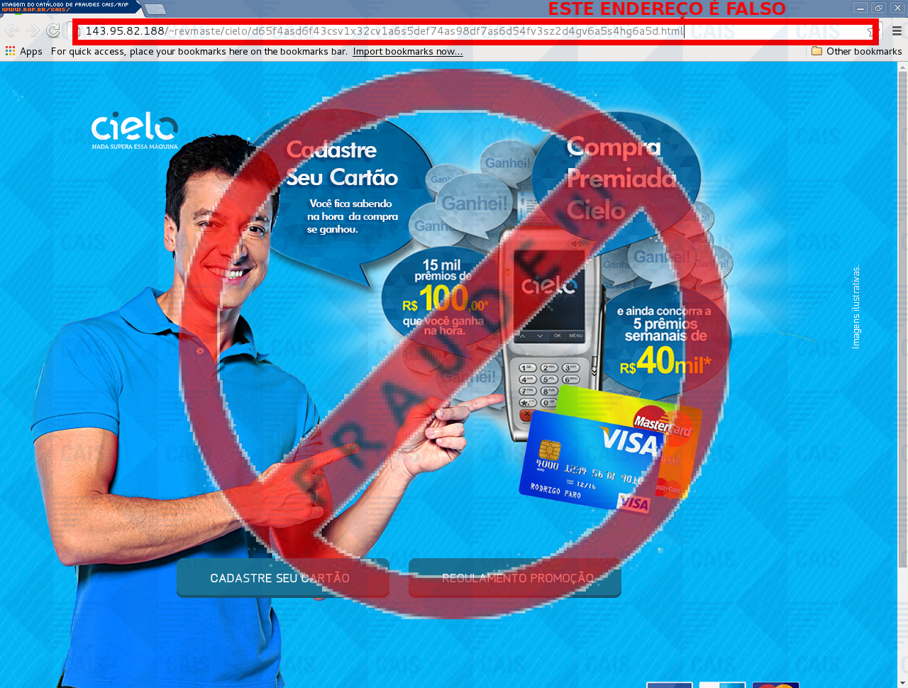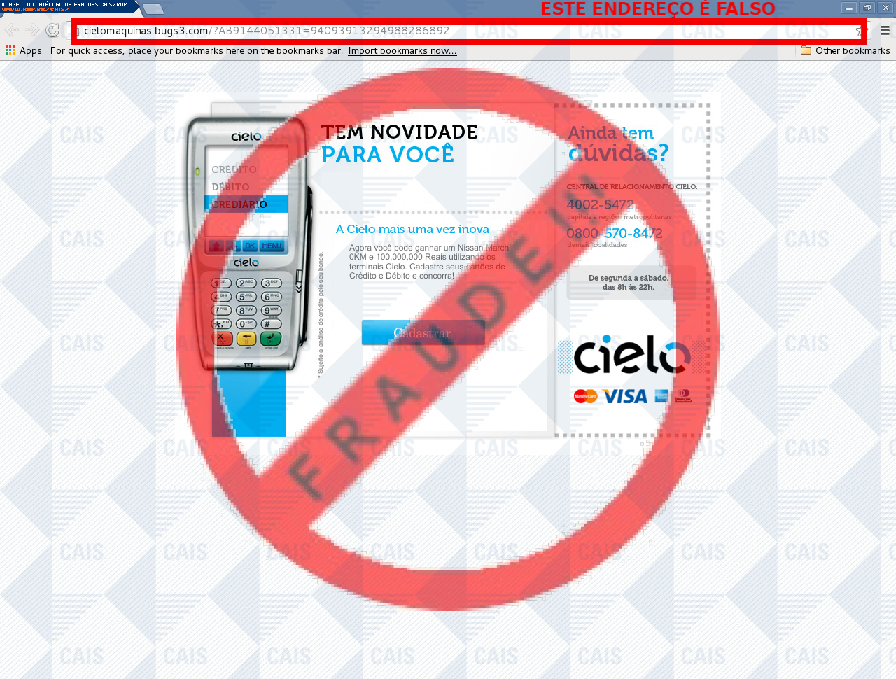 | comentário | A vítima recebe um e-mail informando sobre promoções relacionados a seu cartão Cielo sendo necessário realizar um cadastro, no entanto a página é falsa destinada a roubar os dados do cartão de crédito do usuário. | |