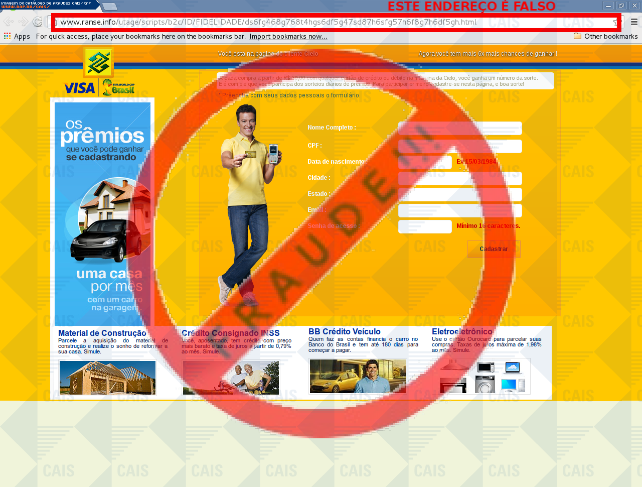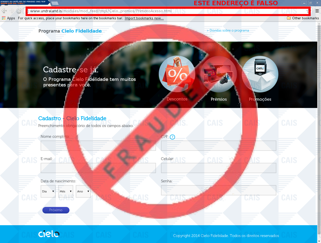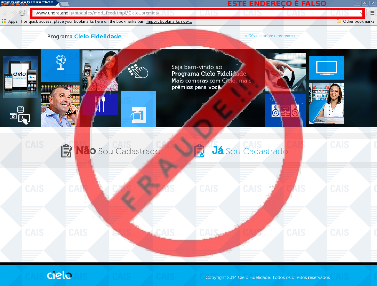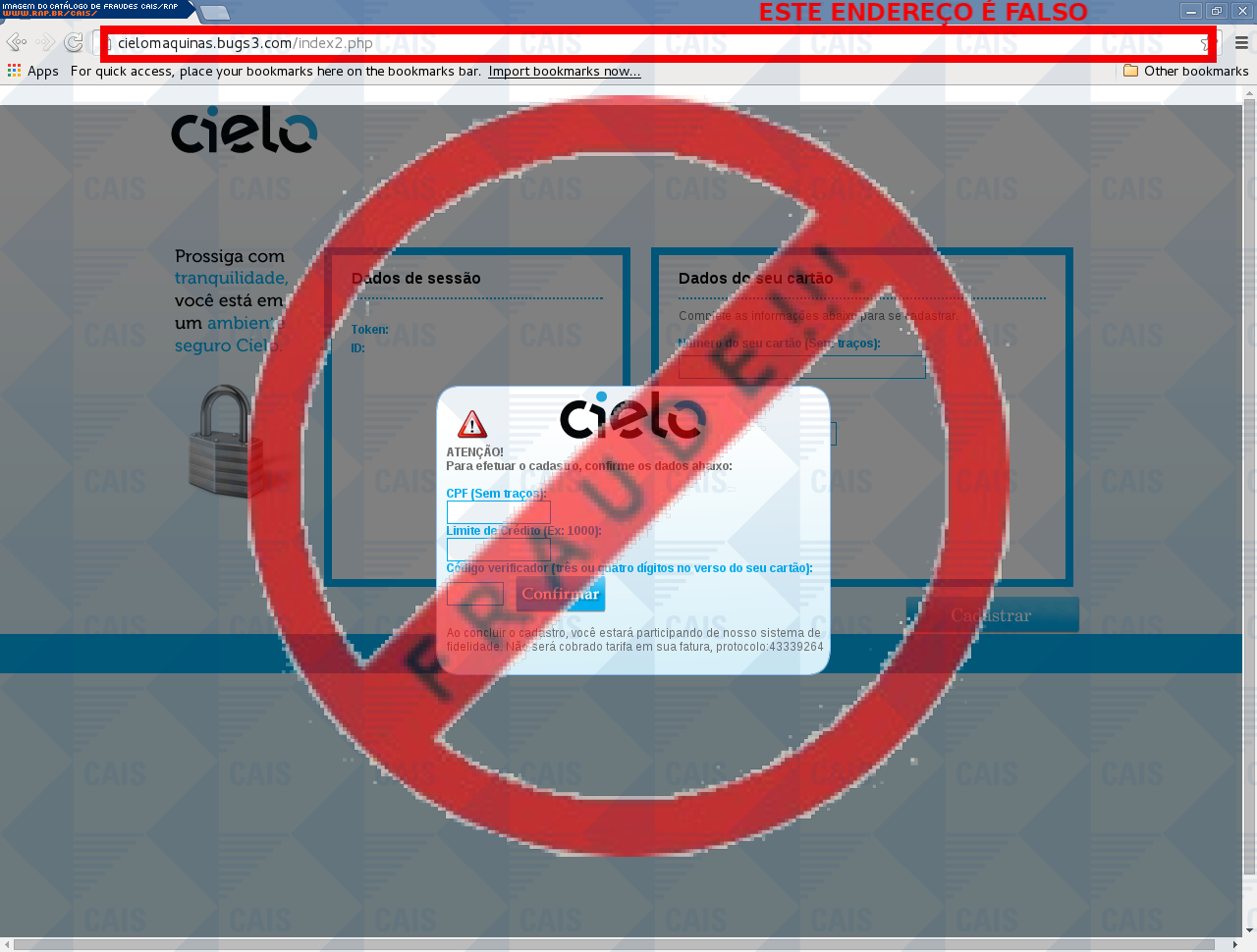 | comentário | A vítima recebe um e-mail informando sobre promoções relacionados a seu cartão Cielo sendo necessário realizar um cadastro, no entanto a página é falsa destinada a roubar os dados do cartão de crédito do usuário. | |
