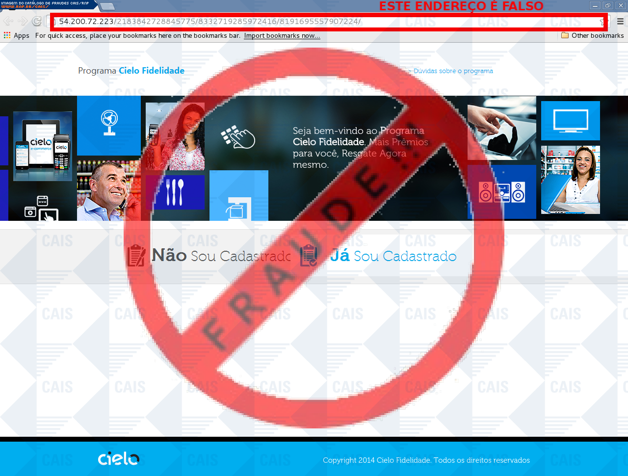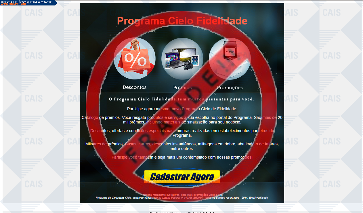 | comentário | A vítima recebe um e-mail informando sobre os benefícios do programa de fidelidade do cartão Cielo disponibilizando o link para cadastro, no entanto a página é falsa criada para roubar as informações do cartão da vítima. | |