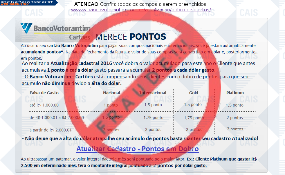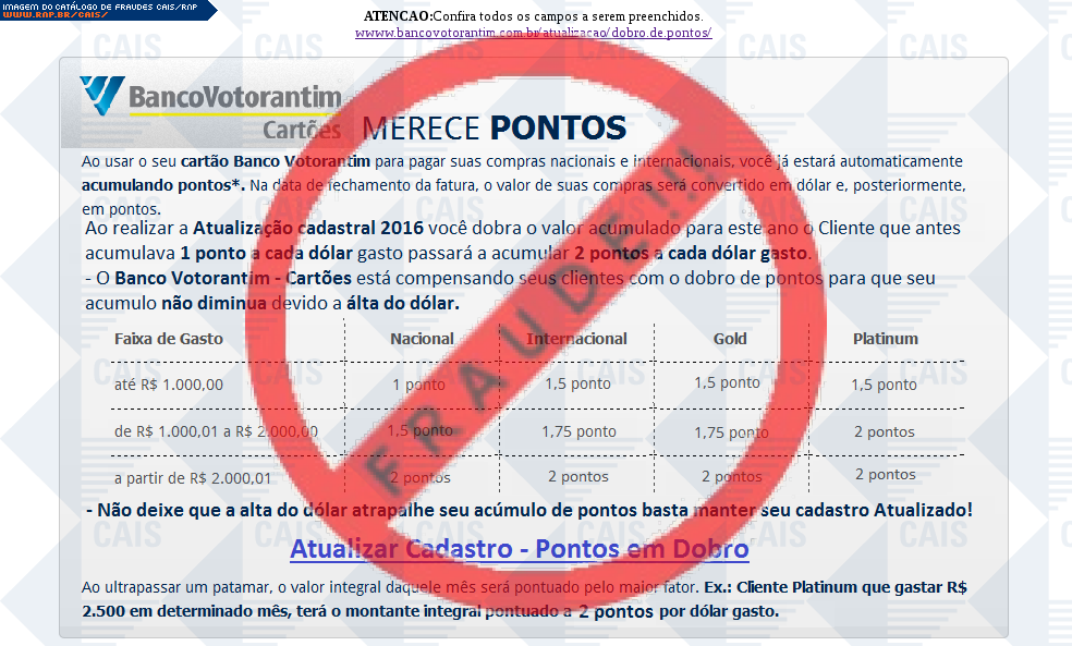 | tipo | FRAUDE - Banco Votorantim Programa de pontos | ID: 45651 |