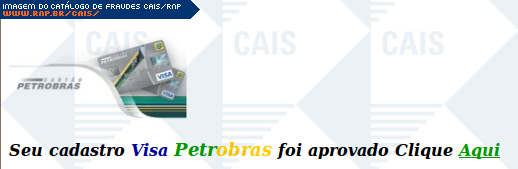 | comentário | A mensagem informa que o cadastro Visa Petróbrás da vítima foi aprovado e fornece um link. O conteúdo malicioso não estava disponível no momento da análise. | |