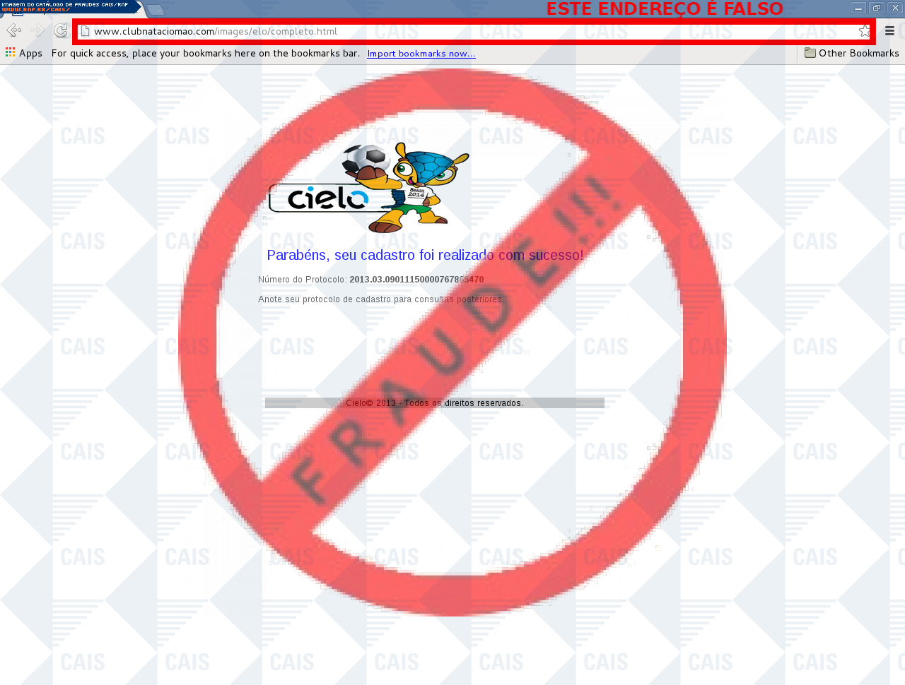 Com a disponibilização pública deste serviço, não é intenção do Centro de Atendimento a Incidentes de Segurança (CAIS) da Rede Nacional de Ensino e Pesquisa (RNP) violar direitos autorais sobre marcas registradas ou logotipos de empresas que porventura constem das amostras. O objetivo é tão somente alertar os usuários sobre as espécies de golpes que se utilizam de tais propriedades intelectuais ou industriais de forma criminosa.