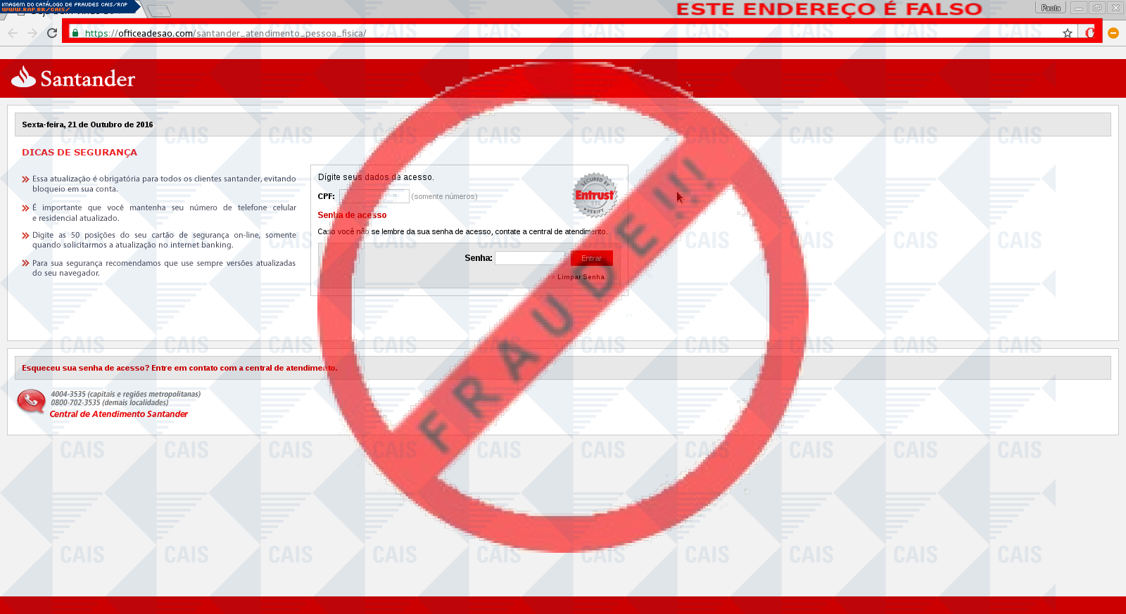 | tipo | FRAUDE - Santander - Atualização | ID: 50596 |