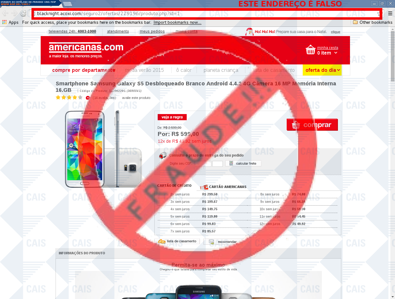 Com a disponibilização pública deste serviço, não é intenção do Centro de Atendimento a Incidentes de Segurança (CAIS) da Rede Nacional de Ensino e Pesquisa (RNP) violar direitos autorais sobre marcas registradas ou logotipos de empresas que porventura constem das amostras. O objetivo é tão somente alertar os usuários sobre as espécies de golpes que se utilizam de tais propriedades intelectuais ou industriais de forma criminosa.