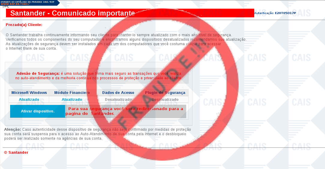 | tipo | FRAUDE - Santander atualização segurança | ID: 39171 |
