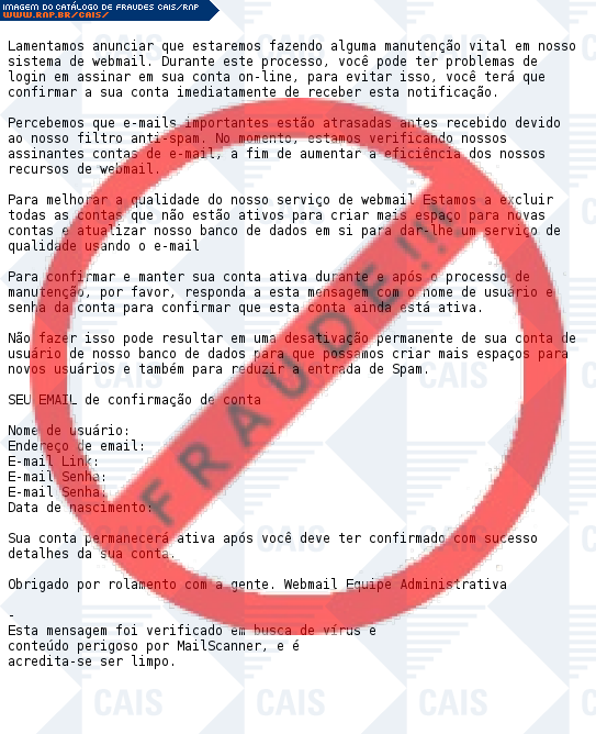 | tipo | FRAUDE - Manutenção Webmail | ID: 30091 |