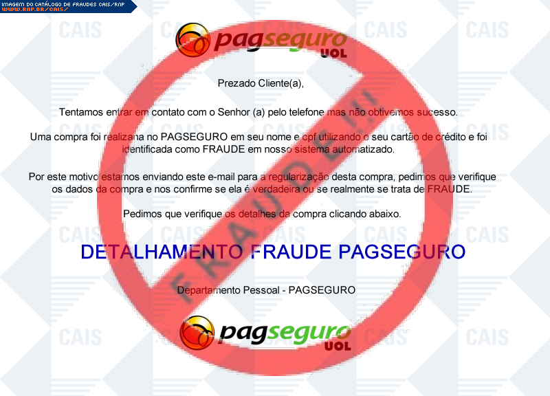 | tipo | FRAUDE - PagSeguro | ID: 30101 |