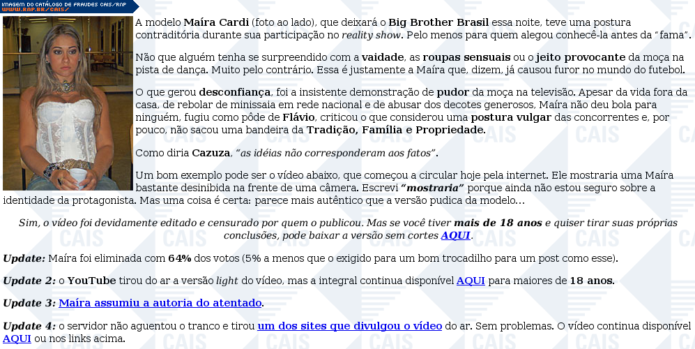 | tipo | Fraude Vídeos Big Brother | ID: 866 |