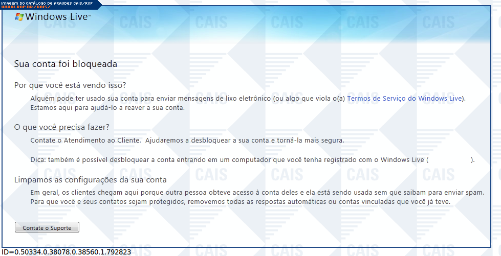 | tipo | Bloqueio de conta MSN | ID: 13261 |