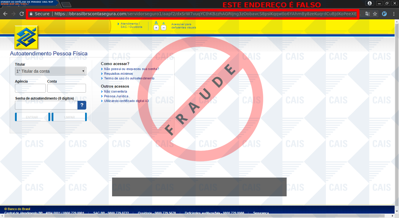 | comentário | O usuário recebe uma mensagem informando que o sistema do Banco do Brasil atualizou sendo necessário realizar uma atualização também na sua conta, no entanto a página é falsa destinada a roubar as informações bancárias do usuário. | |
