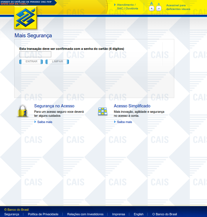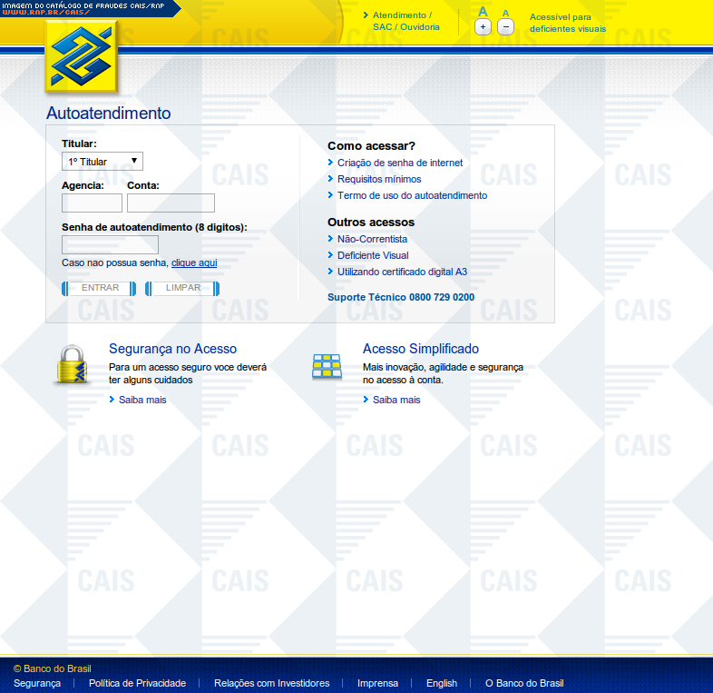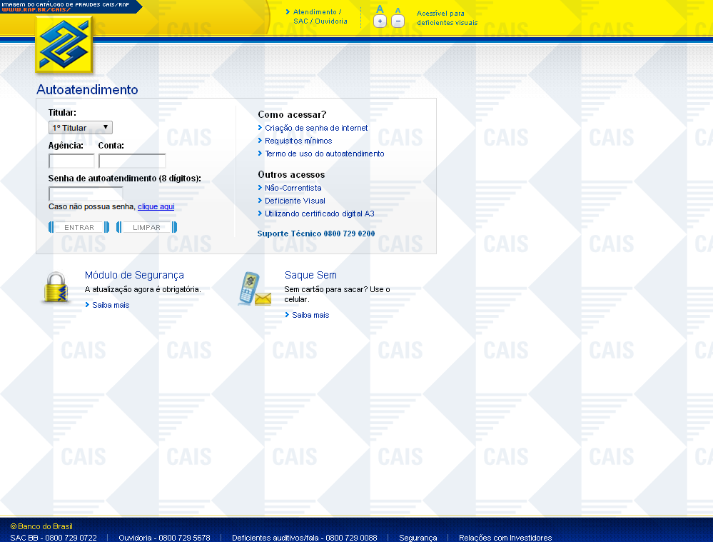 | tipo | Fraude recadastramento Banco do Brasil | ID: 13221 |