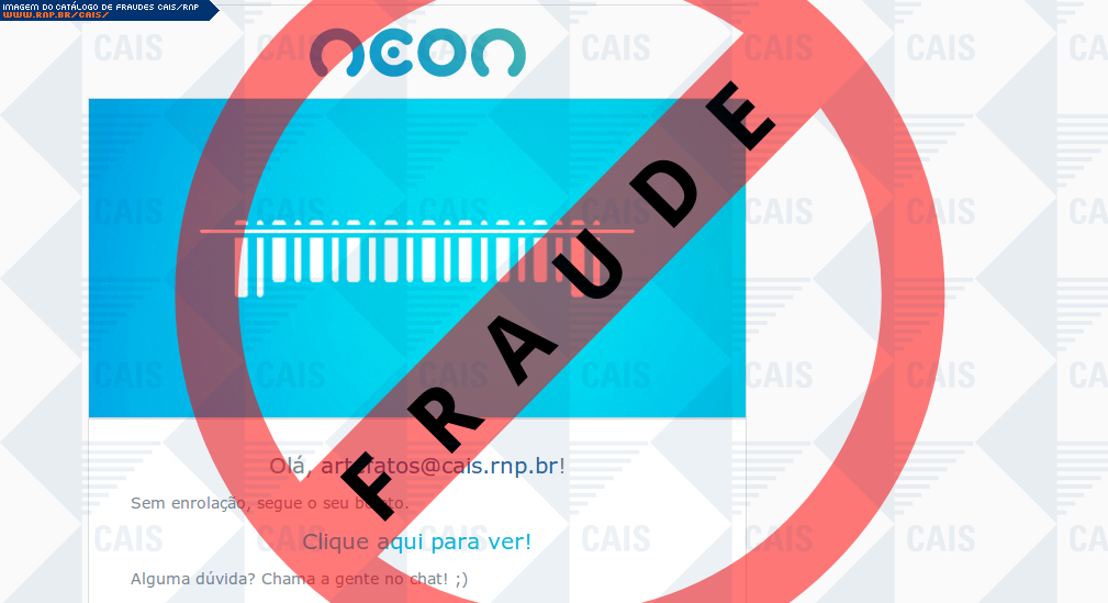 Esta página tem função informativa e educativa. Exibe uma coleção de imagens de phishing scam (fraudes eletrônicas) ou malware (código malicioso) veiculados por meio de spam (e-mail não-solicitado). Trata-se de conteúdo exemplificativo, não exaustivo, uma vez que não é possível contemplar todos os casos de fraudes existentes. Assim, caso você tenha conhecimento de um exemplar que não esteja aqui presente, isto não significa que não seja válido ou real. Inclusive incentivamos que você o envie para análise do CAIS para que, se for o caso, passe a integrar o nosso acervo.