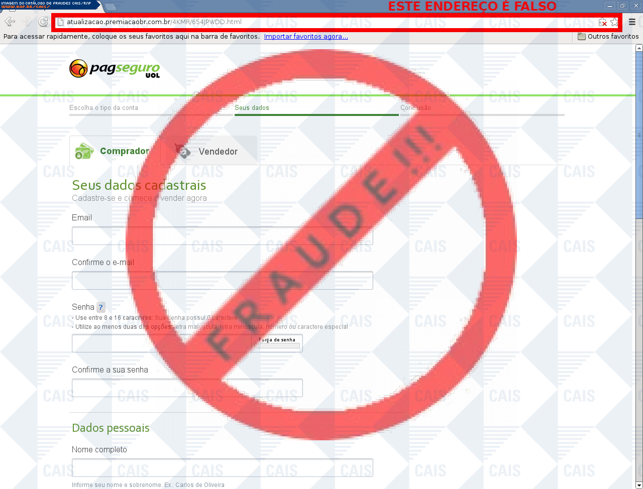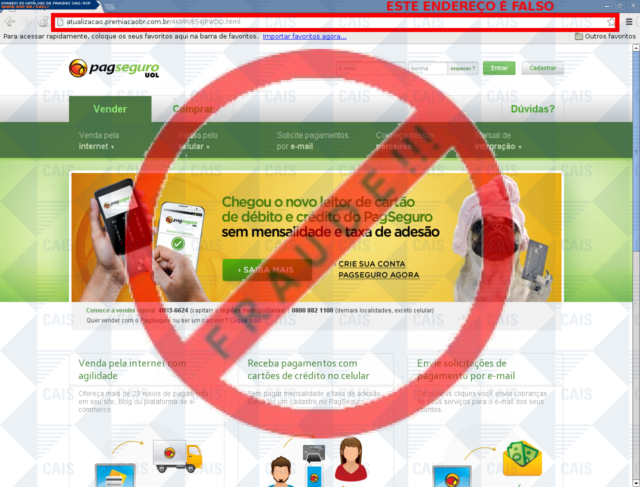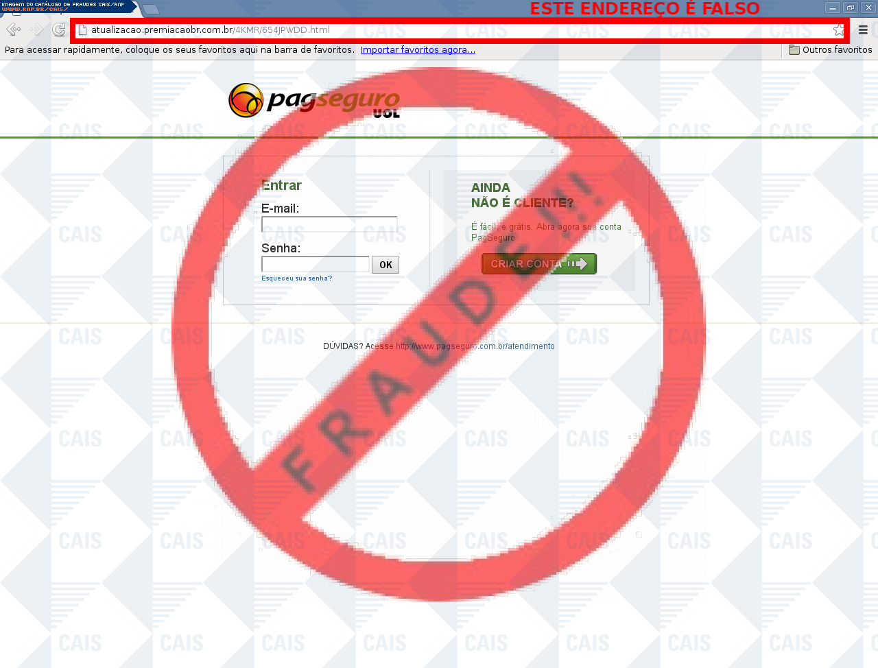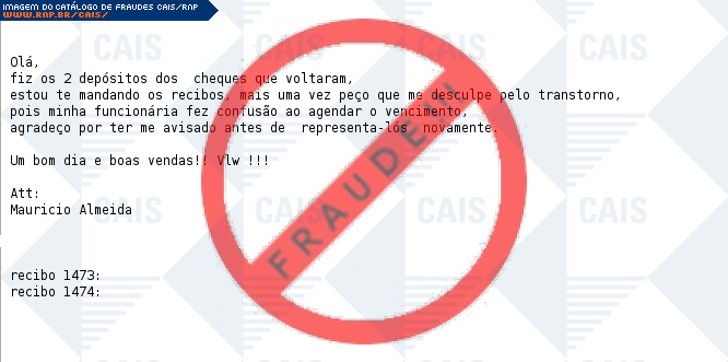 Esta página tem função informativa e educativa. Exibe uma coleção de imagens de phishing scam (fraudes eletrônicas) ou malware (código malicioso) veiculados por meio de spam (e-mail não-solicitado). Trata-se de conteúdo exemplificativo, não exaustivo, uma vez que não é possível contemplar todos os casos de fraudes existentes. Assim, caso você tenha conhecimento de um exemplar que não esteja aqui presente, isto não significa que não seja válido ou real. Inclusive incentivamos que você o envie para análise do CAIS para que, se for o caso, passe a integrar o nosso acervo.