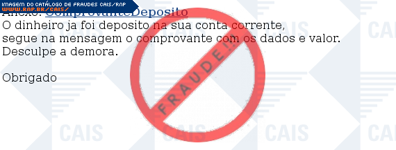 | comentário | A vítima recebe uma mensagem, contendo em anexo um comprovante de depósito, mas na verdade se trata de um arquivo malicioso. | |