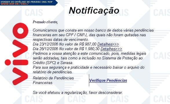 | tipo | Fraude Vivo pendências | ID: 115 |