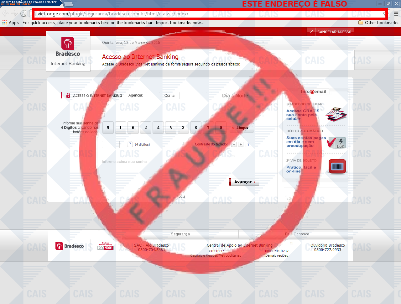 |   |  Fraudes identificadas e divulgadas pelo CAISA partir de 2008, todas as fraudes identificadas pelo CAIS estão sendo ordenadas de acordo com a data de distribuição e disponibilizadas para consulta, com o intuito de conscientizar a comunidade sobre os principais golpes que estão em circulação. Adicionalmente, o CAIS envia alertas de segurança através da lista CAIS Alerta quando uma fraude mostra-se particularmente perigosa aos usuários de computadores. Reporte fraudes: