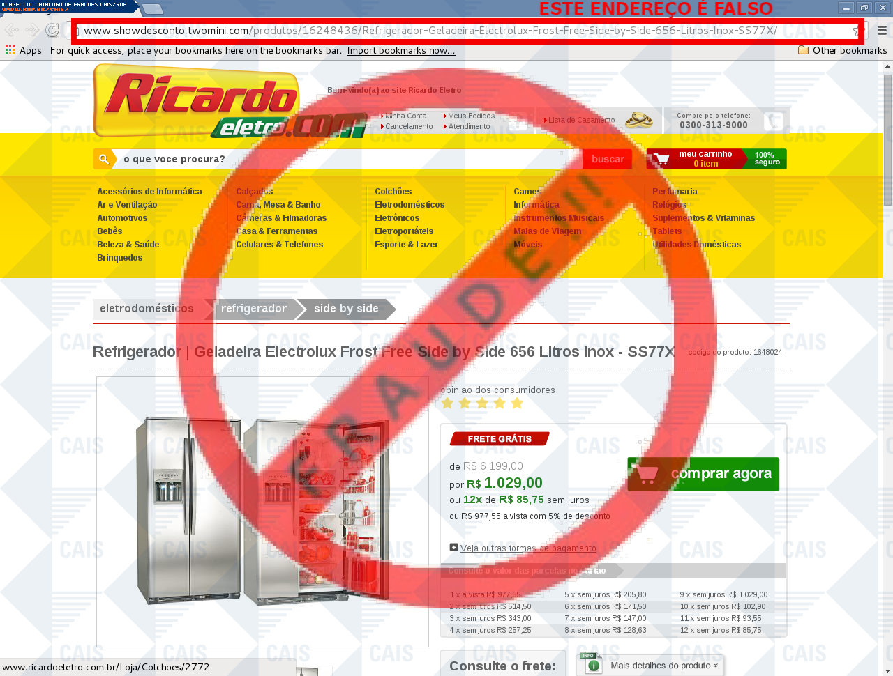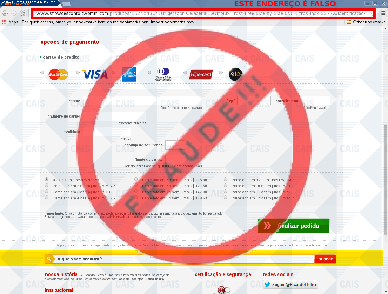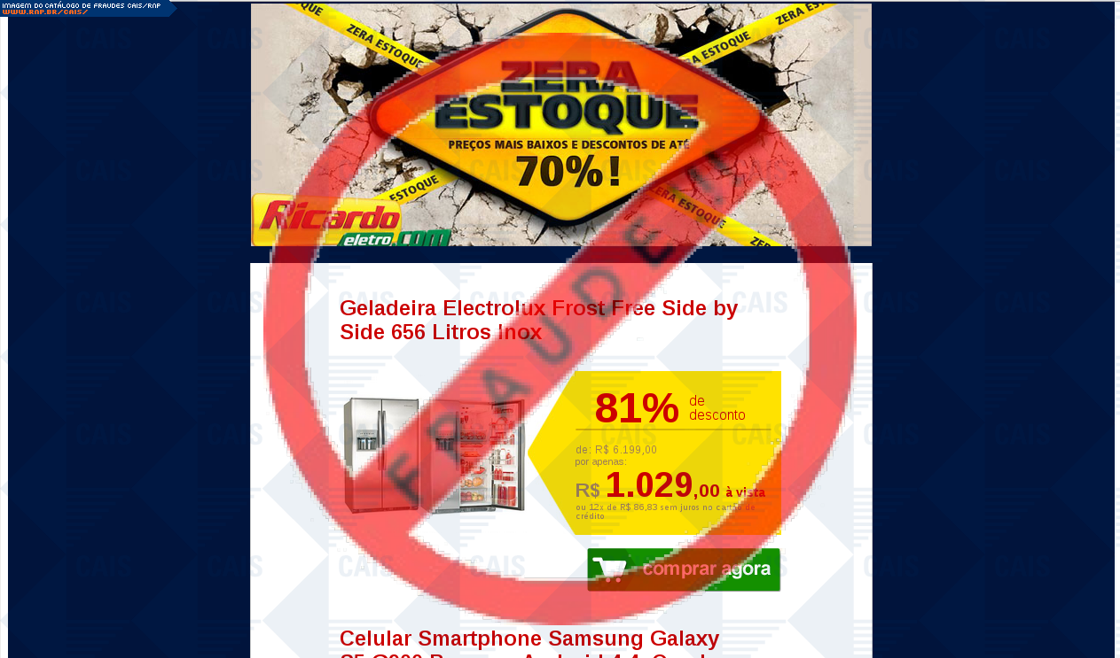 | comentário | A vítima recebe um e-mail informando sobre promoções no site de compra da Ricardo Eletro disponibilizando link de vários produtos em desconto, no entanto a página é falsa destinada a roubar as informações pessoais e do cartão do usuário. | |
