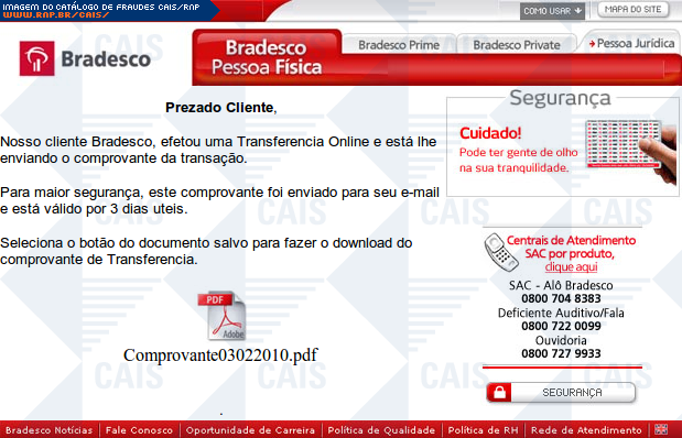 | arquivo malicioso | Recadastramento_bradesco.exe | |