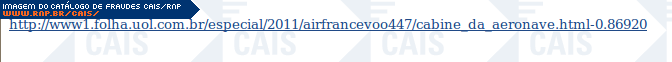 | comentário | A fraude se passa por uma notícia sobre uma suposta gravação da caixa preta do avião da Air France. De acordo com o assunto da mensagem, o comandante da aeronave não estava na cabina no momento do acidente. O link leva a um arquivo malicioso que foi identificado... (leia mais) | |