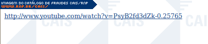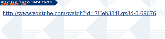 | comentário | A mensagem se passa por um comunicado do youtube.com que informa que o nome da vítima foi mencionado em um vídeo. O link para o suposto vídeo leva a um software malicioso que foi identificado como Trojan.Downloader.VB.VON (BitDefender). | |