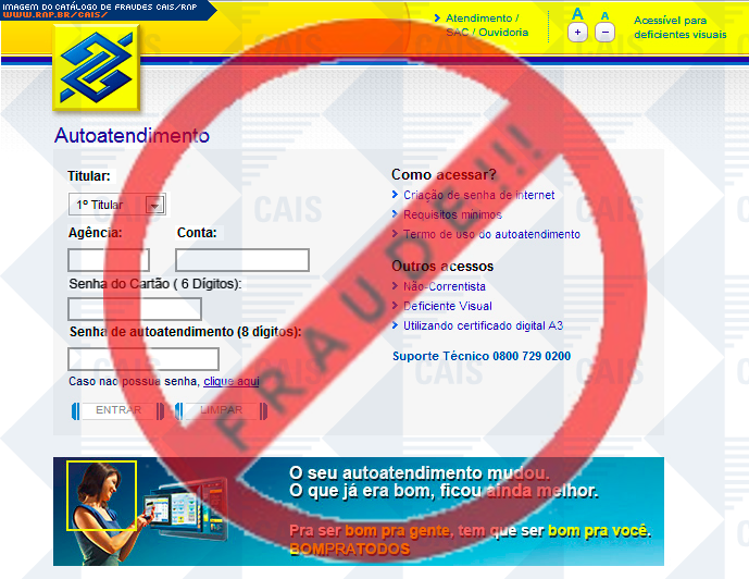 | comentário | Nessa ocorrencia o fraudador encaminha um email ao usuario informando que, devido atualizações de segurança, o mesmo deve criar uma senha de acesso no site do banco, mas ao clicar no link disponivel para tal o mesmo é direcionado a uma pagina falsa que solicita... (leia mais) | |