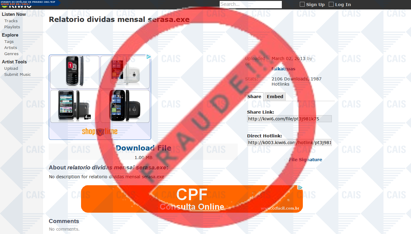 | arquivo malicioso | relatorio dividas mensal serasa.exe | |