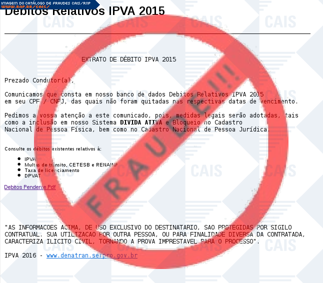 | tipo | FRAUDE - Detran cobrança IPVA | ID: 46736 |