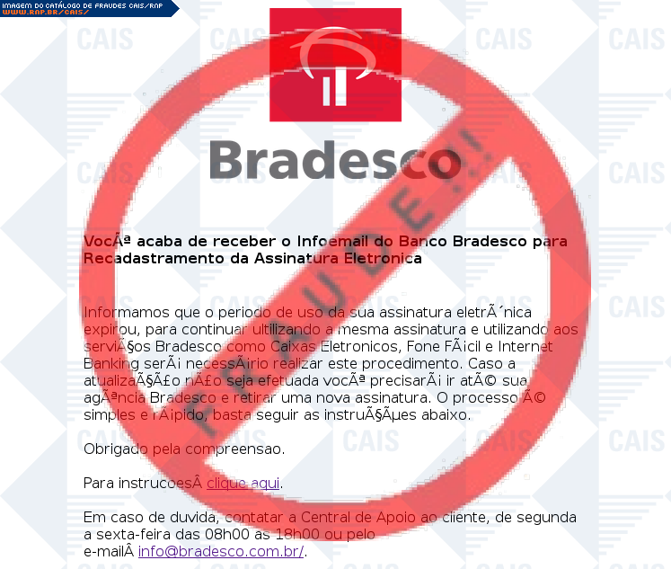 | assunto | Bradesco Informa Recadastramento Urgente | |