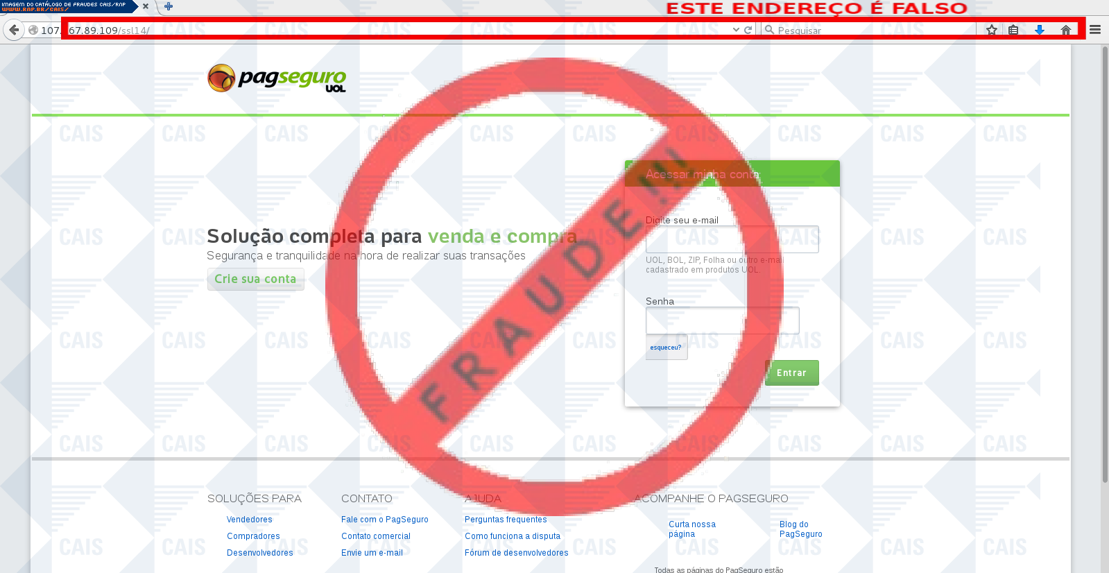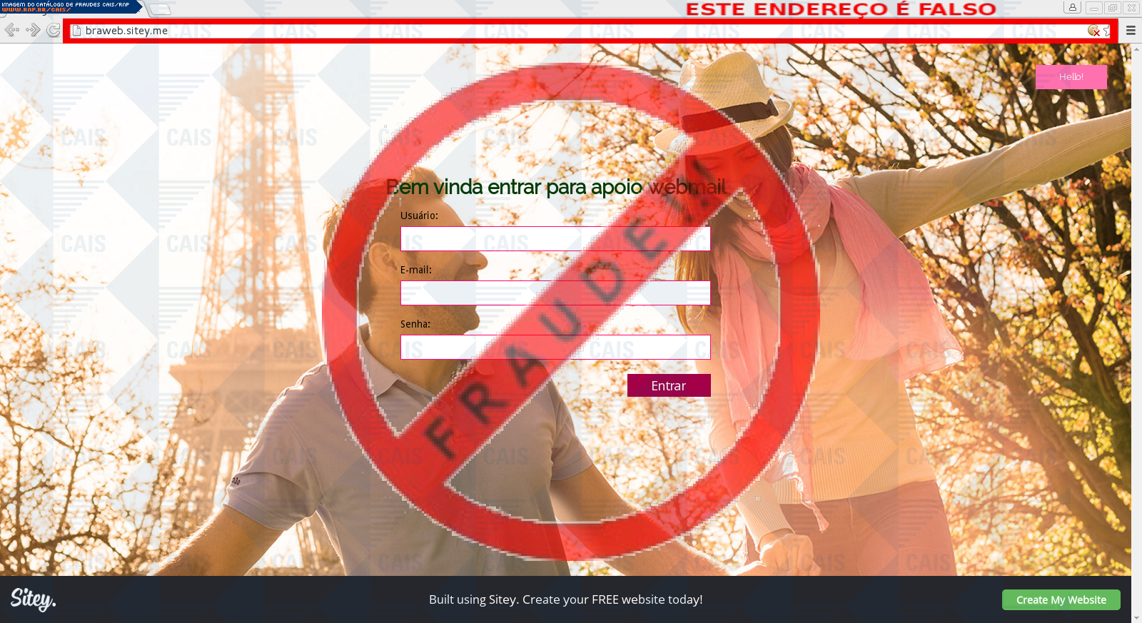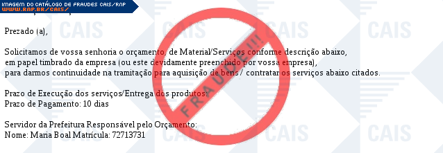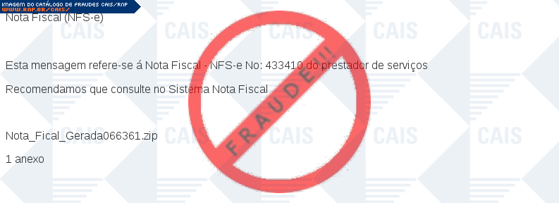 Esta página tem função informativa e educativa. Exibe uma coleção de imagens de phishing scam (fraudes eletrônicas) ou malware (código malicioso) veiculados por meio de spam (e-mail não-solicitado). Trata-se de conteúdo exemplificativo, não exaustivo, uma vez que não é possível contemplar todos os casos de fraudes existentes. Assim, caso você tenha conhecimento de um exemplar que não esteja aqui presente, isto não significa que não seja válido ou real. Inclusive incentivamos que você o envie para análise do CAIS para que, se for o caso, passe a integrar o nosso acervo.