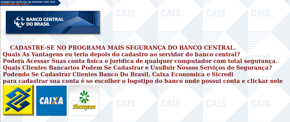 | assunto | Programa Mais Segurança Banco Central, Cadastre-se e Tenha Mais Segurança Em Seus Acessos. | |