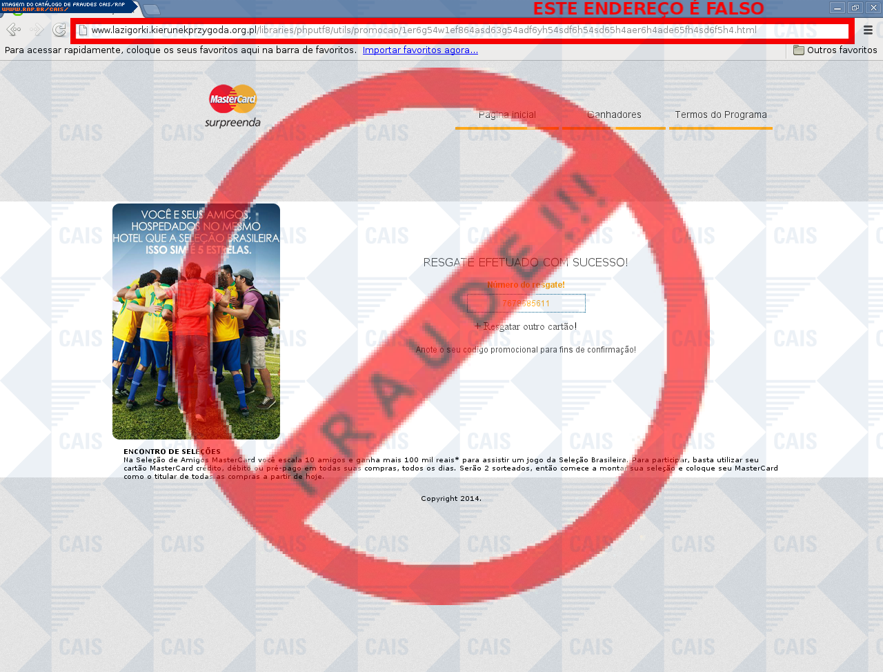 | comentário | A vítima recebe uma mensagem, contendo um link para se cadastrar em uma suposta promoção, mas ao clicar no link, a vítima é direcionada para uma página falsa, bem diferente da original, e o endereço do site tem uma letra 's' a mais. | |