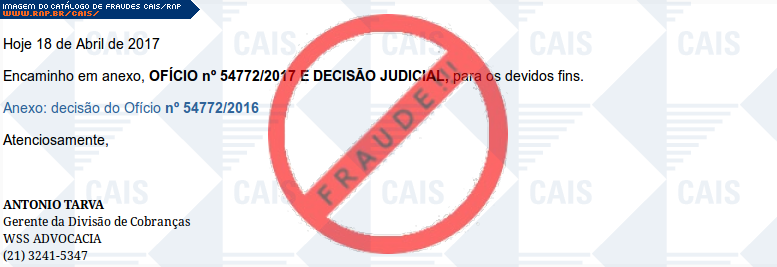 | comentário | A vítima recebe uma mensagem contendo um oficio judicial disponível para download no entanto o arquivo gerado é malicioso destinado a roubar informações do usuário com o nome de HEUR:Trojan.Win32.Generic . | |