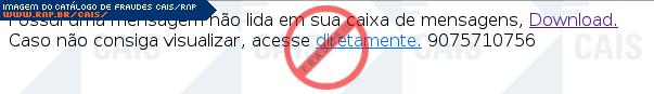 Esta página tem função informativa e educativa. Exibe uma coleção de imagens de phishing scam (fraudes eletrônicas) ou malware (código malicioso) veiculados por meio de spam (e-mail não-solicitado). Trata-se de conteúdo exemplificativo, não exaustivo, uma vez que não é possível contemplar todos os casos de fraudes existentes. Assim, caso você tenha conhecimento de um exemplar que não esteja aqui presente, isto não significa que não seja válido ou real. Inclusive incentivamos que você o envie para análise do CAIS para que, se for o caso, passe a integrar o nosso acervo.