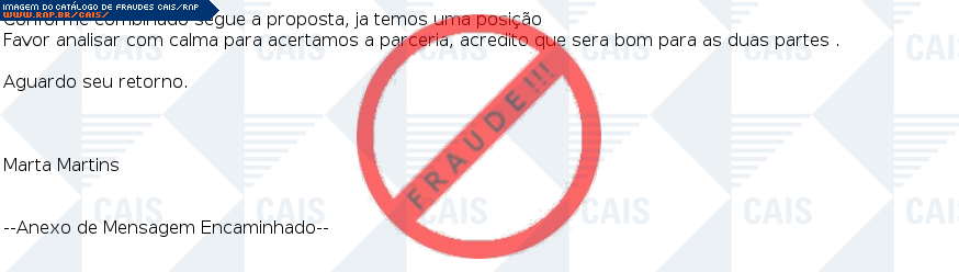 | comentário | A vítima recebe um email com uma suposta proposta em anexo. Contudo, o anexo leva ao download de um malware de nome Artemis!29F96349736A. | |