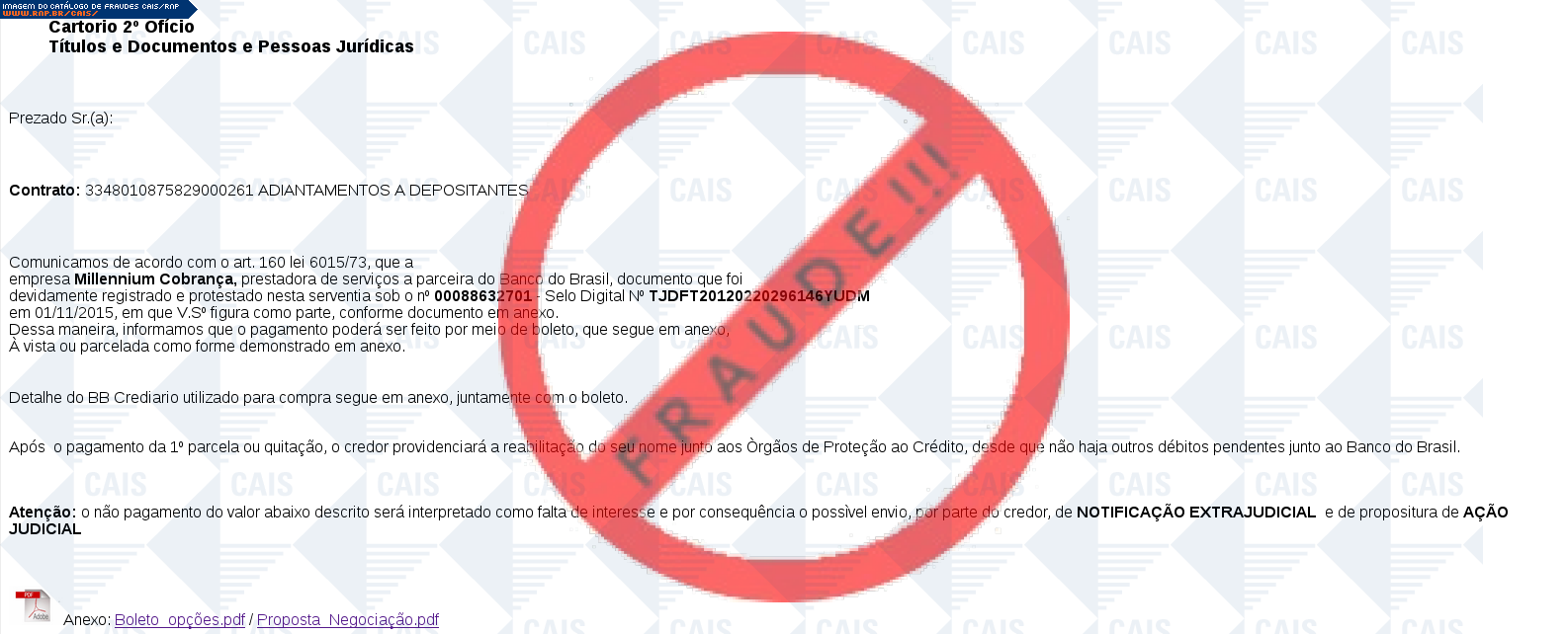 | tipo | FRAUDE - Intimação Judicial | ID: 45846 |