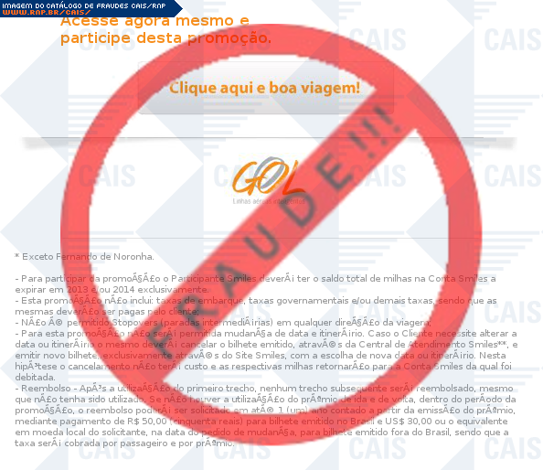 | comentário | A vítima recebe um email fraudulento de uma companhia aérea a respeito de uma promoção de milhas aéreas. O link para essa promoção redireciona para um site de phishing. | |