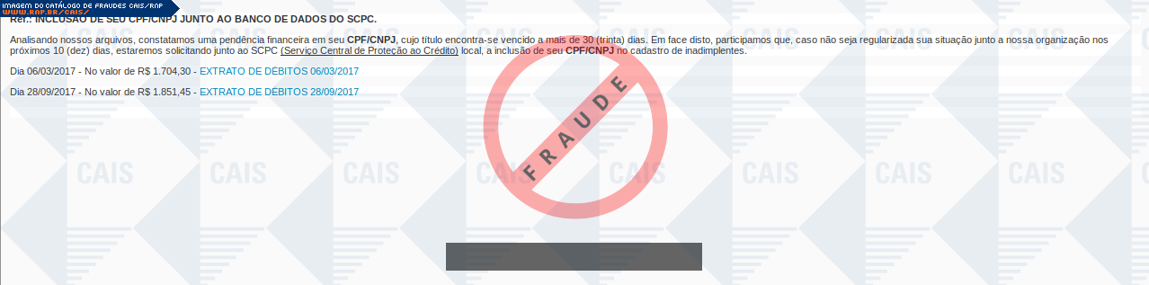 | tipo | FRAUDE - SPC/SERASA | ID: 61066 |
