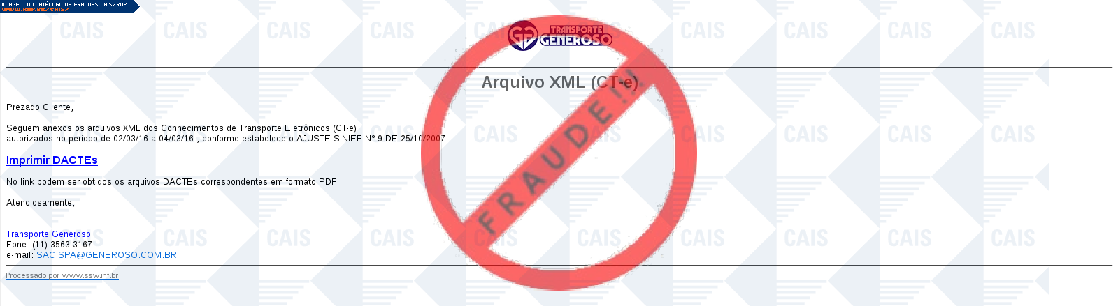 Esta página tem função informativa e educativa. Exibe uma coleção de imagens de phishing scam (fraudes eletrônicas) ou malware (código malicioso) veiculados por meio de spam (e-mail não-solicitado). Trata-se de conteúdo exemplificativo, não exaustivo, uma vez que não é possível contemplar todos os casos de fraudes existentes. Assim, caso você tenha conhecimento de um exemplar que não esteja aqui presente, isto não significa que não seja válido ou real. Inclusive incentivamos que você o envie para análise do CAIS para que, se for o caso, passe a integrar o nosso acervo.