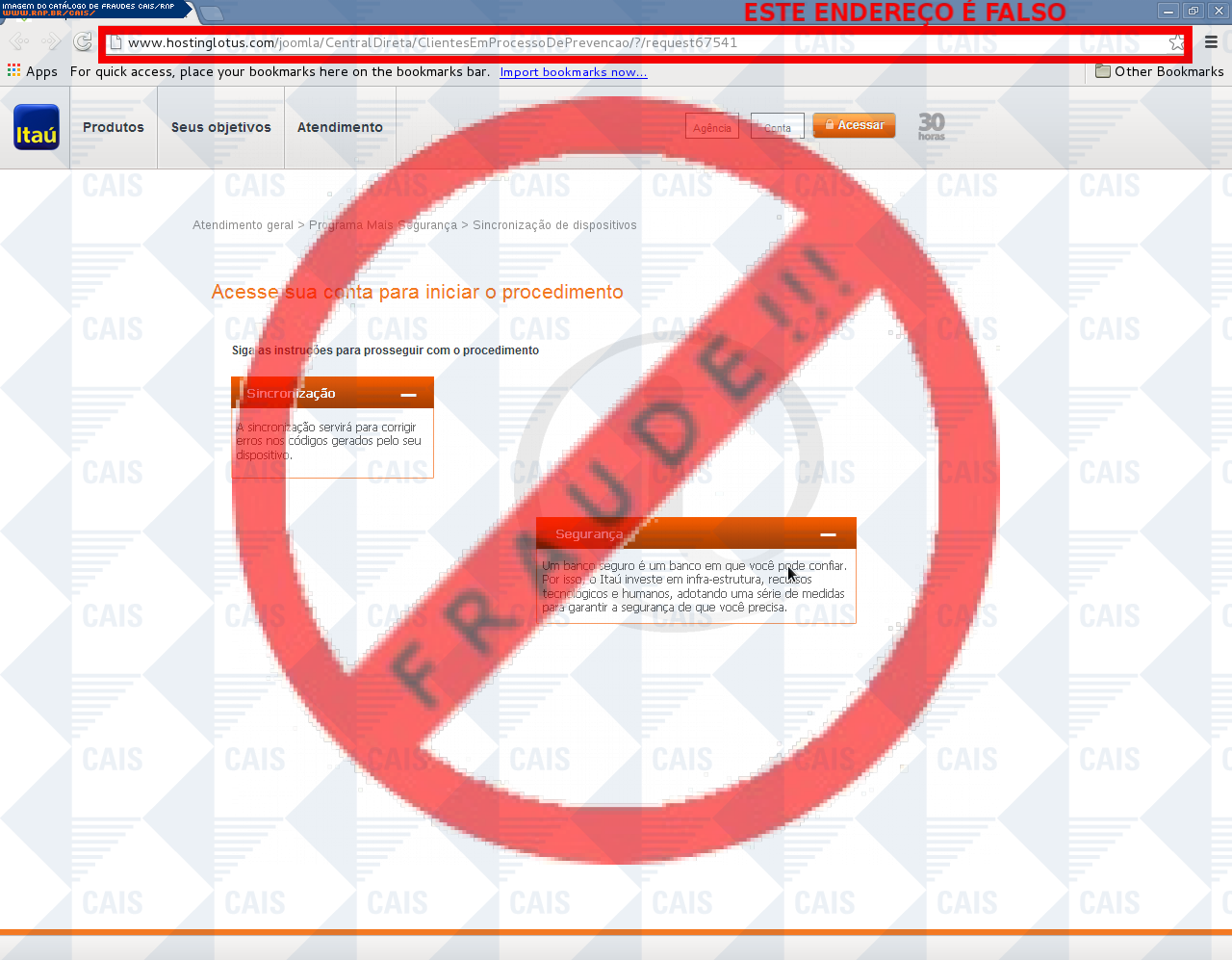 | comentário | A vítima recebe uma mensagem solicitando a sincronização do mecanismo de segurança, porem o usuário é direcionado para uma página maliciosa que rouba seus dados do banco. | |
