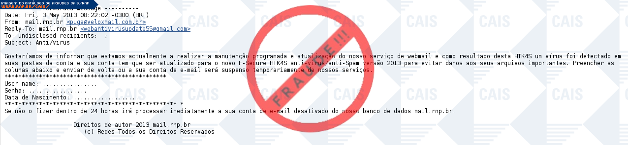 | tipo | FRAUDE - Webmail | ID: 20121 |
