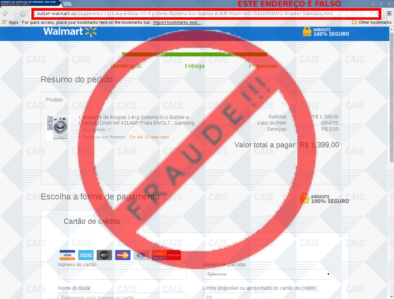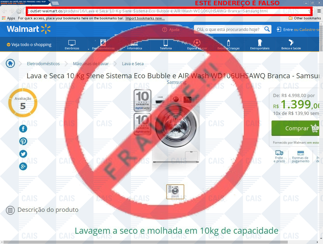 | comentário | A vítima recebe um e-mail informando sobre promoções no site de compra da loja Walmart disponibilizando link de vários produtos em desconto, no entanto a página é falsa destinada a roubar as informações pessoais e do cartão do usuário. | |