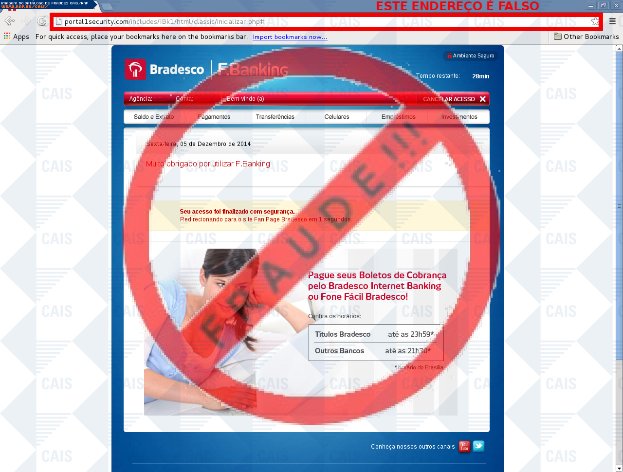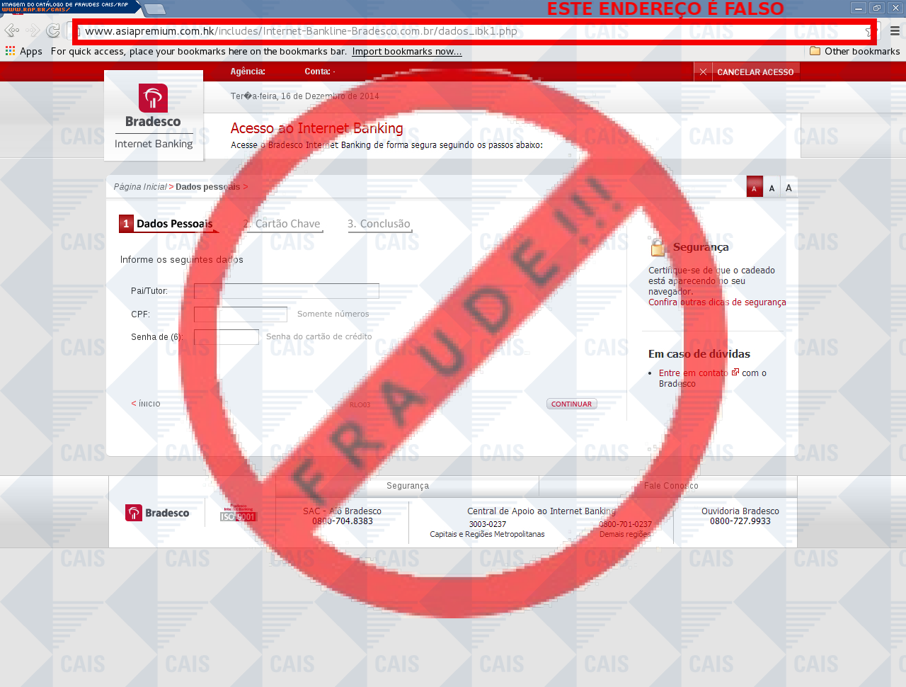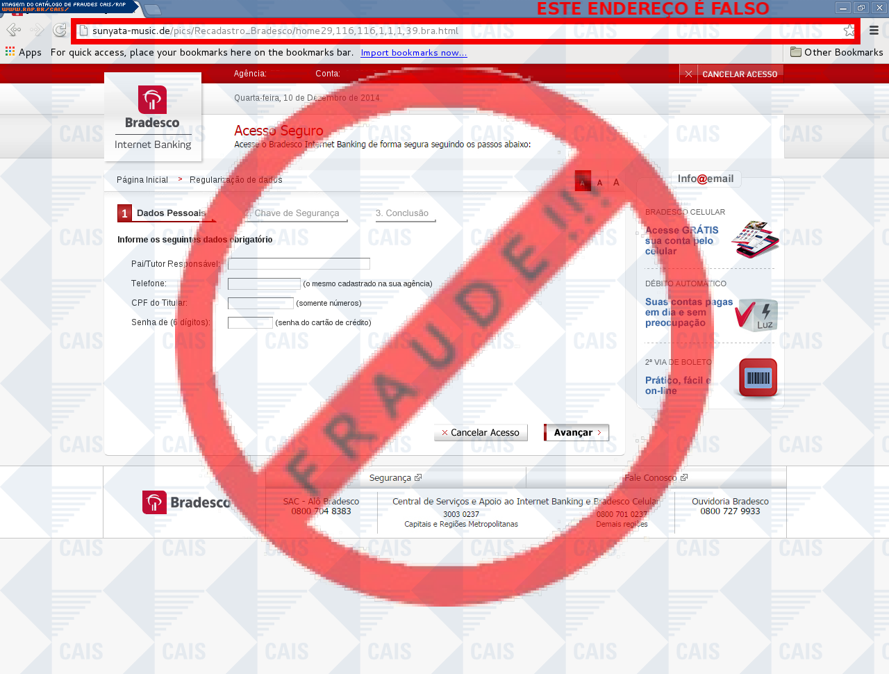 | assunto | 12/12/2014 - BANCO BRADESCO S.A - ÚLTIMO COMUNICADO: Atualização de segurança. | |