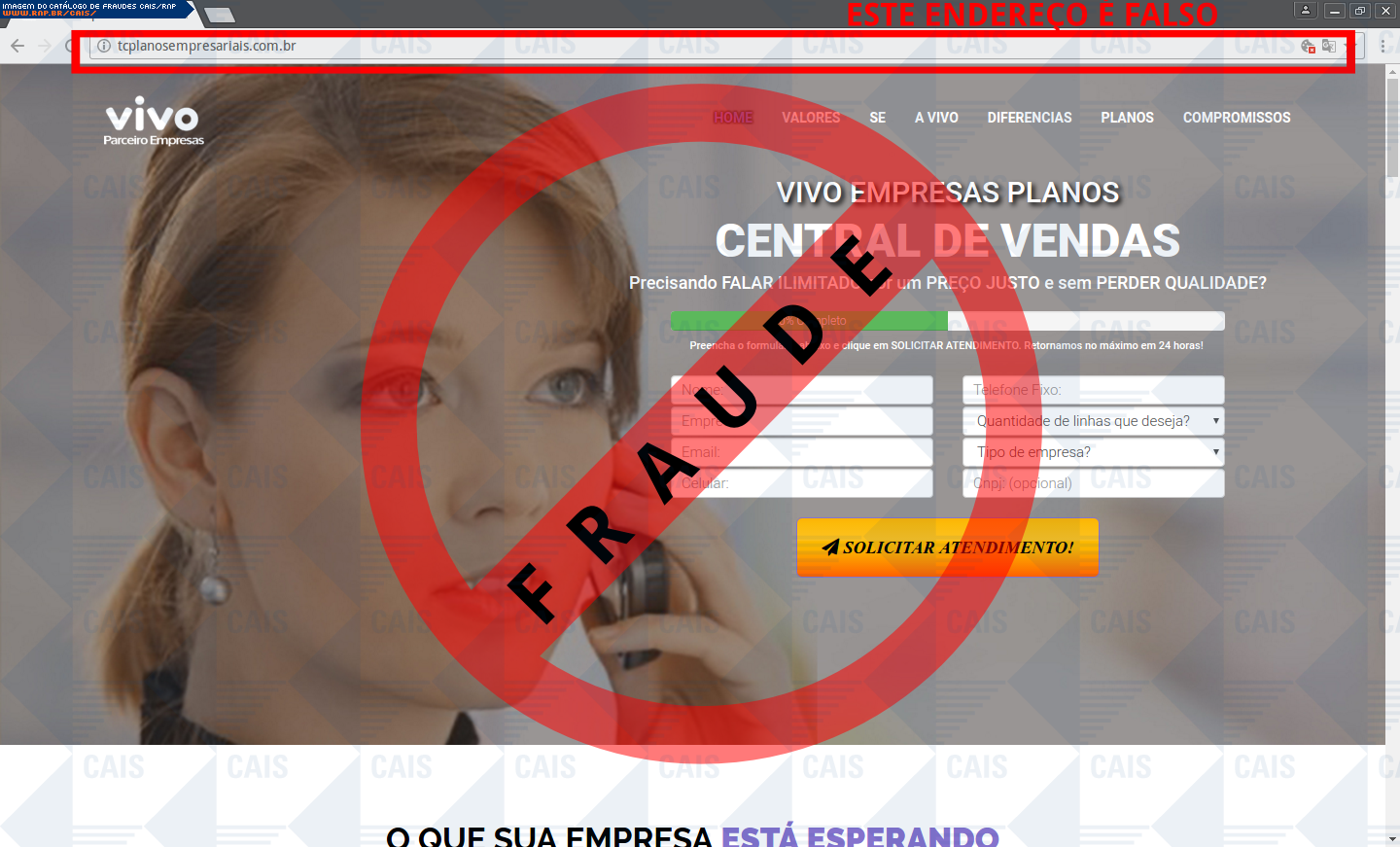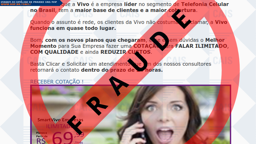 | comentário | Usuário recebe email promocional em nome da VIVO oferecendo planos, disponibiliza link para site de phishing para colher informações do usuário. | |