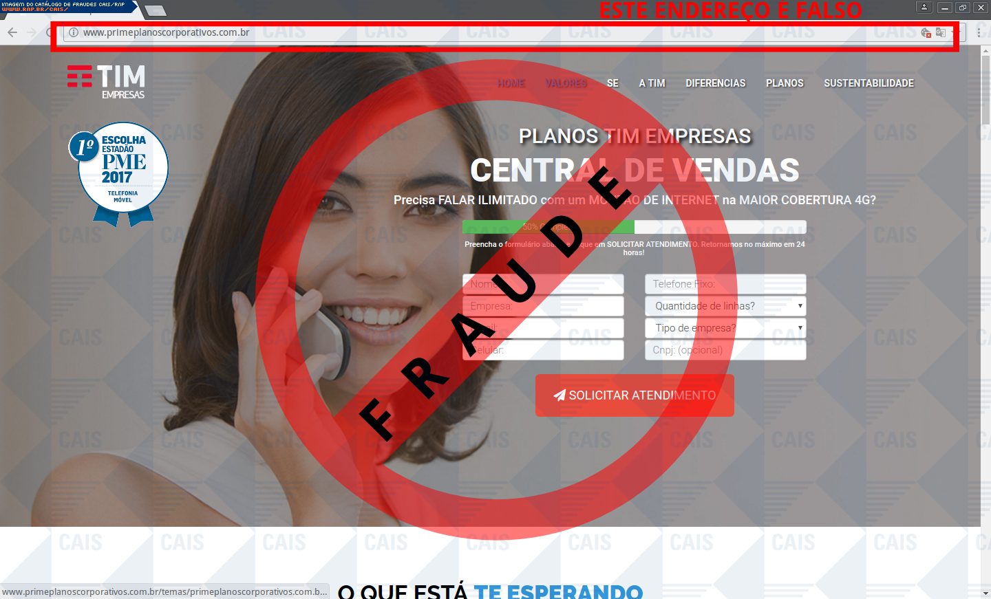 | comentário | Usuário recebe promoção de plano empresarial da TIM, site disponibilizado é falso e rouba informações do usuário. | |