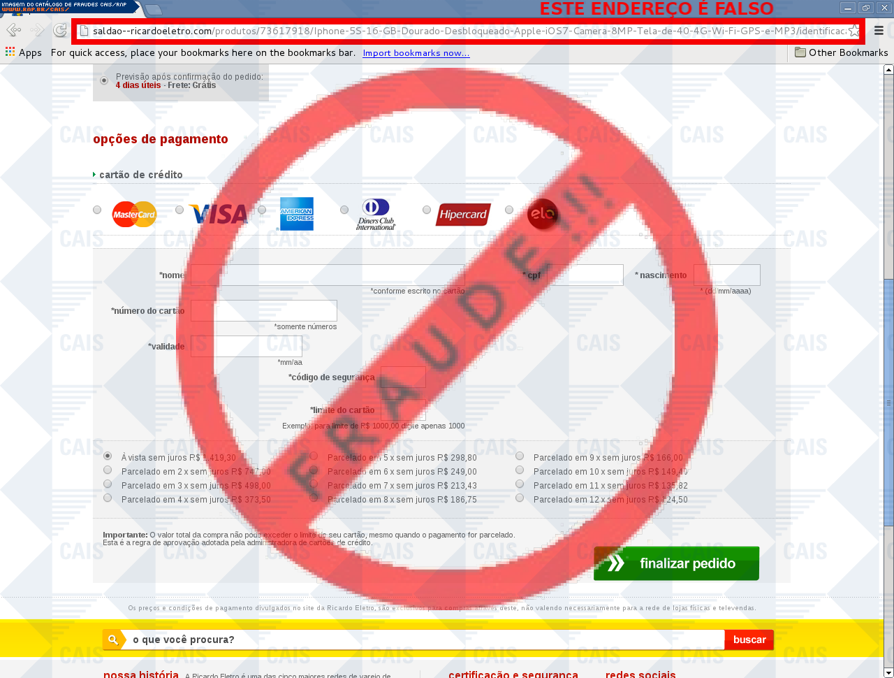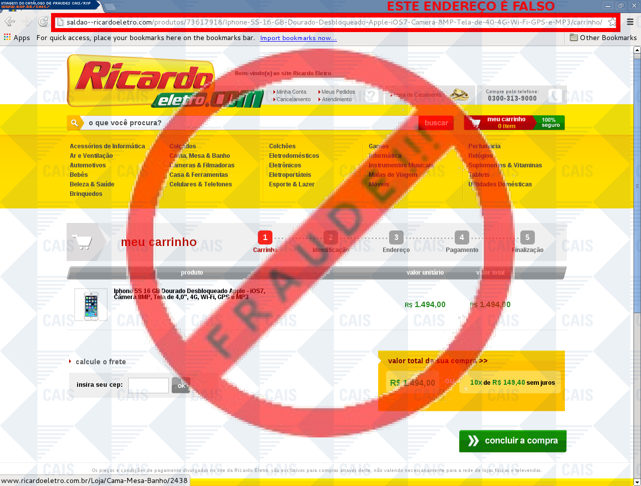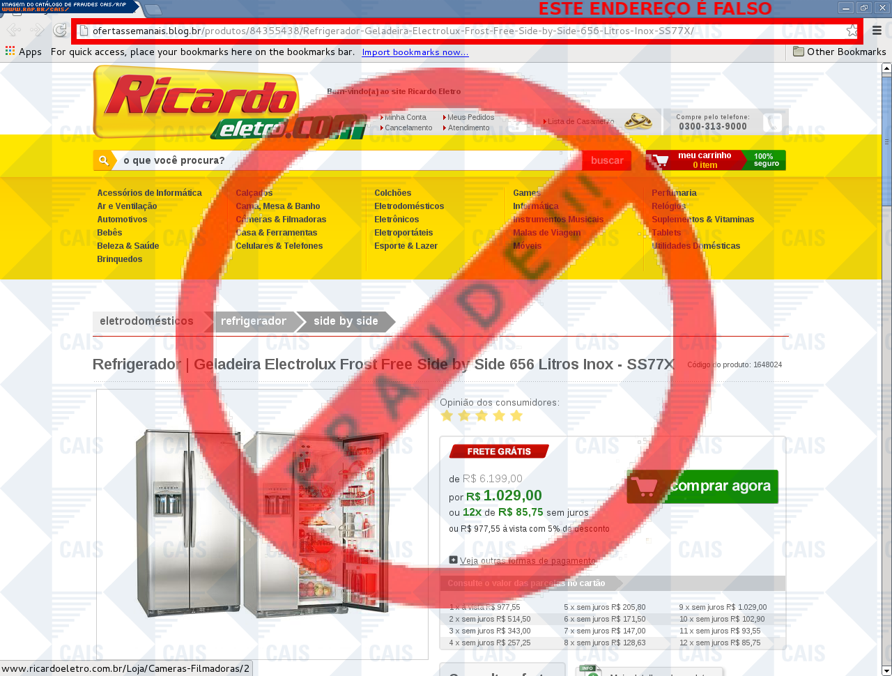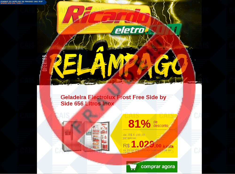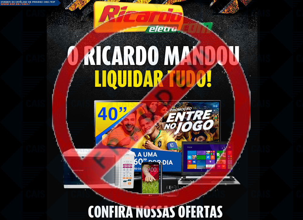 | comentário | Uma página de vendas da Ricardo eletro oferece produtos em oferta disponível para compra, no entanto a página é falsa criada para roubar os dados pessoais e do cartão de crédito da vítima. | |