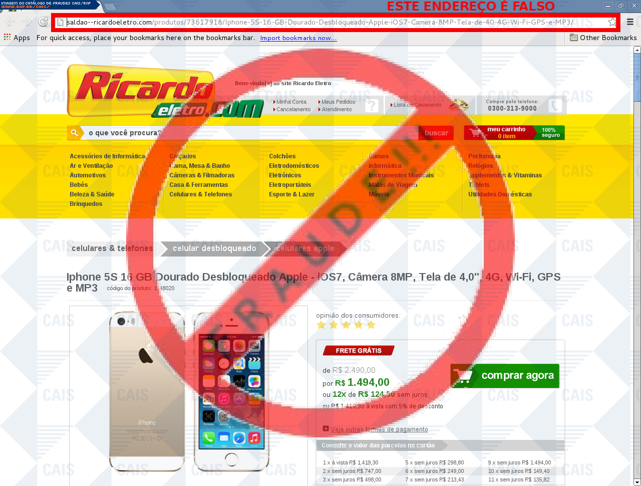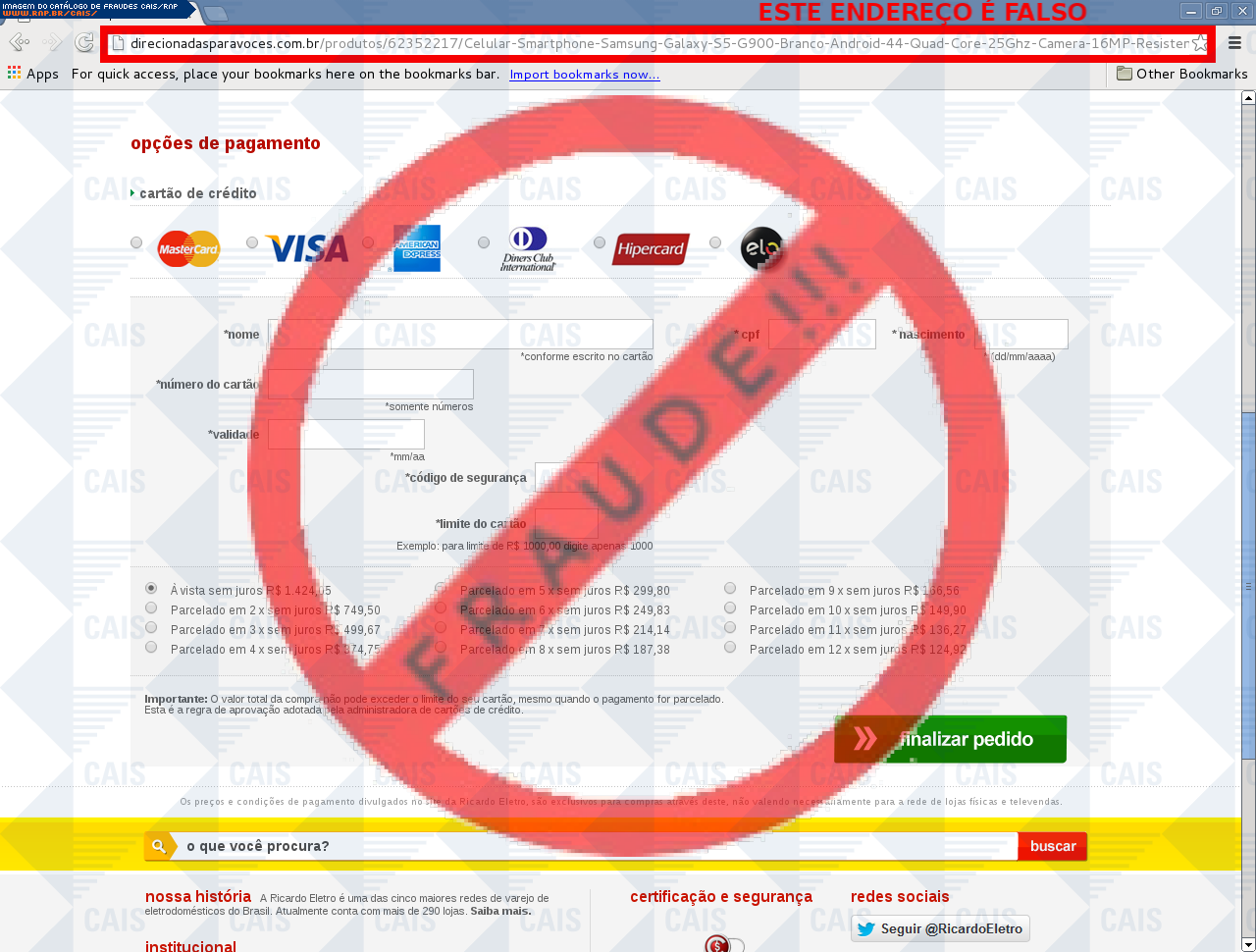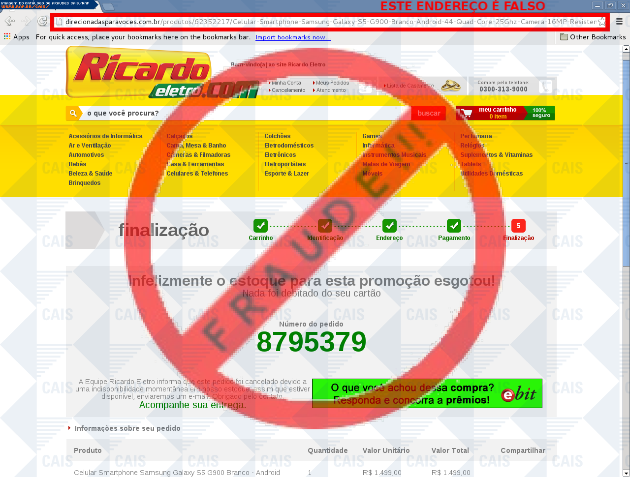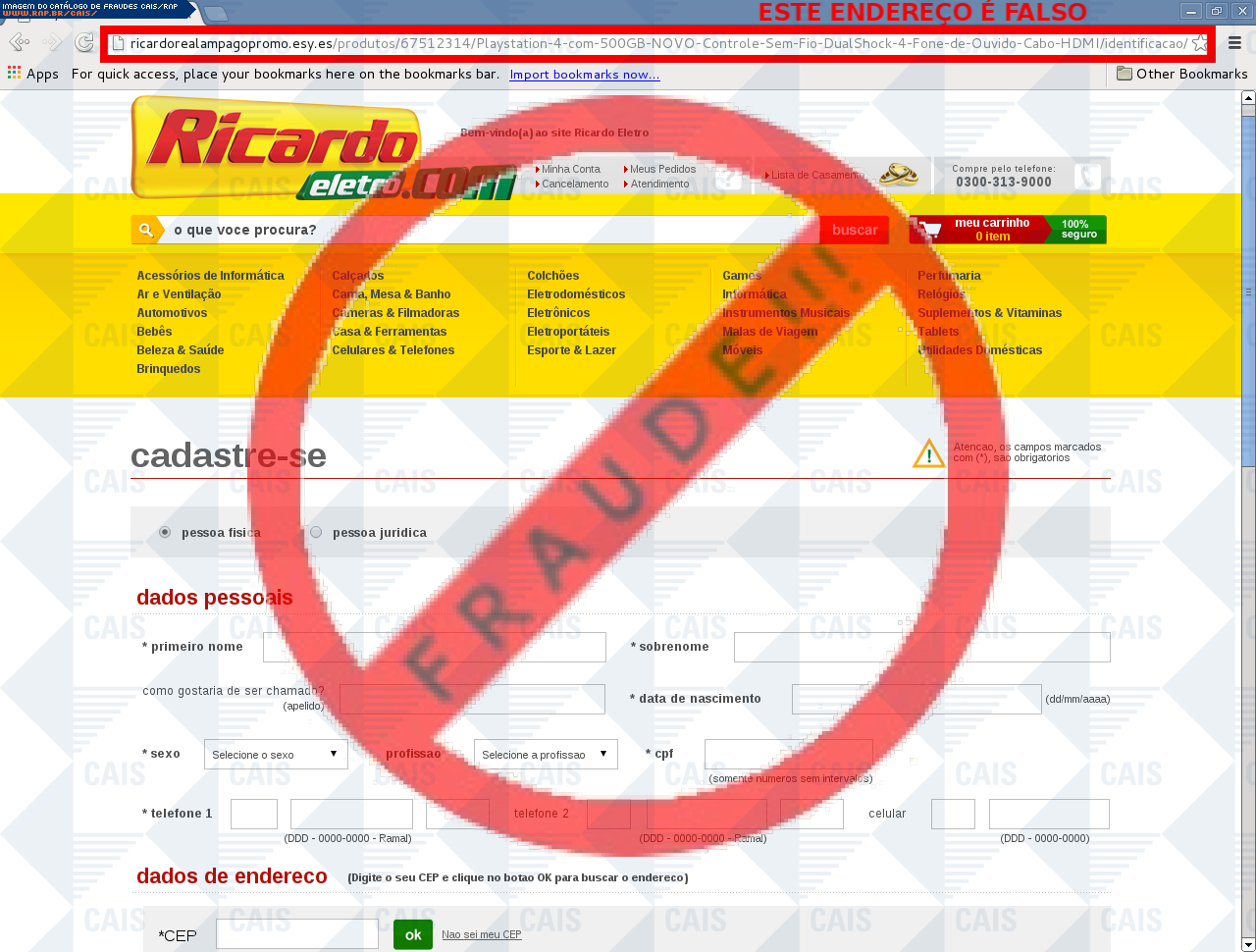 | comentário | Uma página de vendas da Ricardo eletro oferece produtos em oferta disponível para compra, no entanto a página é falsa criada para roubar os dados pessoais e do cartão de crédito da vítima. | |